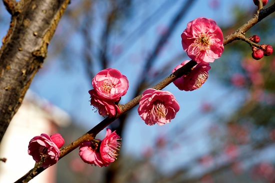 武陵源区融媒体中心1月16日讯(记者 王娇)深冬时节,梅香浮动。近日,随着气温变化,武陵源区多处梅花陆续开放,粉红色的花朵与碧水蓝天相映成趣,吸引市民游客纷纷驻足“打卡”,感受冬日的“梅”好时光。
