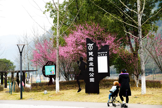 走进索溪峪健康主题公园,一抹抹嫣红率先跃入眼帘。遒劲的梅枝斜逸而出,层层叠叠的粉色花瓣在暖阳下舒展,微风拂过,花瓣轻摇,不少市民沿着步道散步赏花,欢声笑语间尽显惬意。