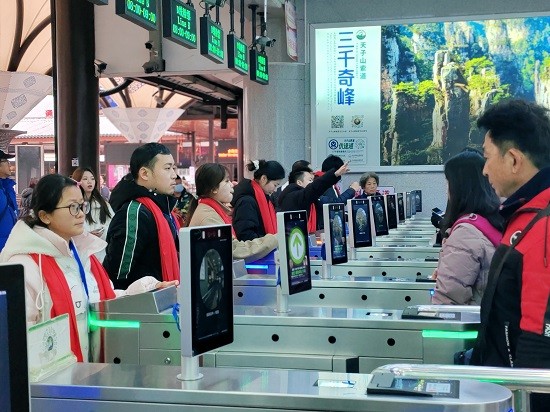 作为张家界国家森林公园主入口,吴家峪门票站是游客入园的第一站,也是展示景区形象的重要窗口。除夕当天,门票站内张灯结彩、年味浓厚。工作人员提前到岗、规范值守,票务核验、咨询引导、秩序维护、便民服务等岗位全线就位,秉持“五员一体”服务理念,坚持游客至上,全力保障游客通行高效顺畅,让远道而来的游客在奇峰秀水间,真切感受景区的真诚与温暖。