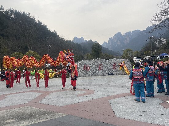 武陵源区融媒体中心2月19日讯(通讯员 罗钰小 张稚渃 )新春佳节,年味正浓。为丰富春节假期文旅体验,传承弘扬非物质文化遗产,杨家界门票站精心举办春节非遗展演活动,将土家花灯、舞龙灯等特色民俗搬上门前舞台,为八方游客与本地群众献上一场热闹喜庆的民俗盛宴,让新春佳节更具文化韵味。