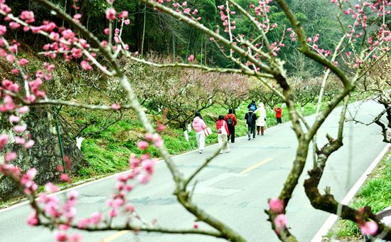 漫步黄石寨梅园,远山如黛,梅花或疏影横斜,或繁花满枝,暗香浮动,沁人心脾。青山为底,繁花为饰,传统水墨意境与鲜活春日生机完美交融,一步一景,美不胜收。景区环保车穿梭于花海与峰林之间,载着八方游客穿行于如画景致中,车轮轻转,花香拂面,勾勒出动静相宜的绝美画面。