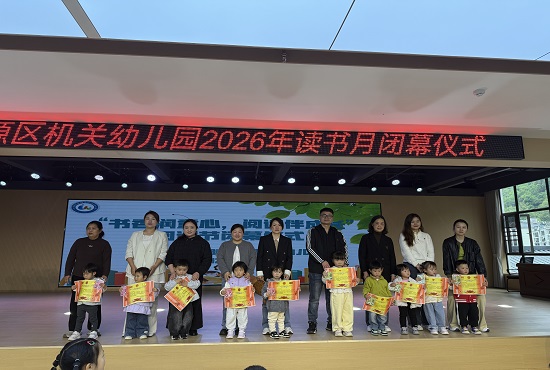 武陵源区融媒体中心4月28日讯(通讯员 覃兰芳)春风缱绻,书香沁心。为培育幼儿阅读习惯,营造家园共读的良好氛围,4月27日下午,武陵源区机关幼儿园组织师生及家长代表齐聚校园,举办读书月闭幕仪式,标志着幼儿园为期一月的主题阅读系列活动圆满收官。