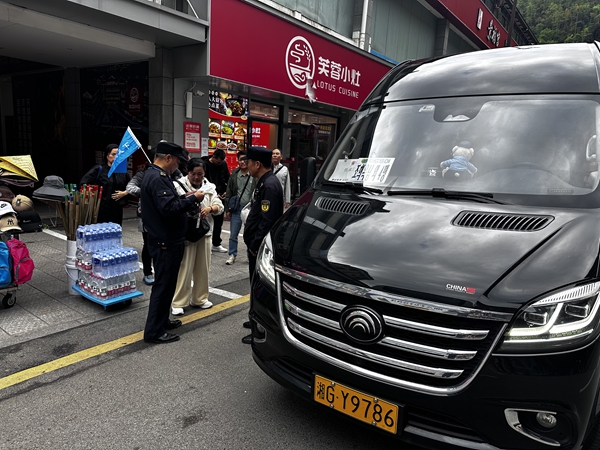 此次联合执法聚焦“导游乱象 强制消费”核心纠治目标,划分三大重点执法区域,实施精准打击:一是文旅与城交部门联合执法,针对景区入口周边、交通枢纽等重点区域,严厉查处无证导游揽客、“黑车”非法营运等行为,同时深入排查旅游经营环节,严查是否存在“采购不合格商品”等侵害游客权益的违规行为,斩断“黑车黑导”与劣质商品交易的利益链条。二是文旅与市场监管部门联合执法,对辖区购物场所开展拉网式检查,重点核查是否存在导游违规进店引导、强制或诱导消费、强买强卖、未明码标价等违法行为,规范购物场所经营行为与导游从业纪律,杜绝不合理消费乱象。三是多部门协同联动,公安、城管、张管局景区综合执法大队、军地坪街道等部门各司其职,全面排查景区周边旅游咨询、餐饮、住宿等经营主体,严厉打击追客赶客、虚假宣传、不合理低价游等乱象,维护市场整体秩序。