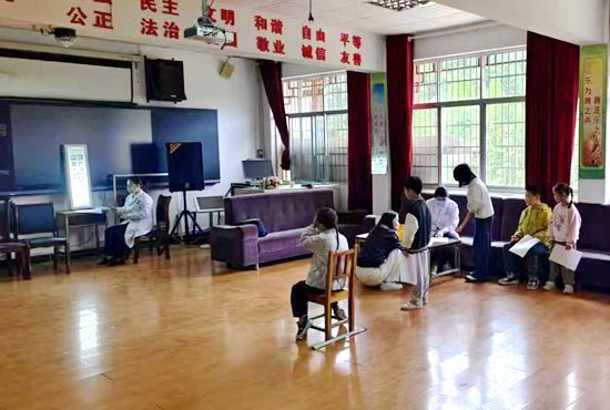 本次体检涵盖身高、体重、血红蛋白检测、内外科检查、牙齿检查等项目。在中心幼儿园,26名幼儿在老师引导下有序排队,积极配合完成各项检查。学校小学部的10名学生在医务人员的指引下完成身高测量、视力检测等,整个检测过程秩序井然,为幼儿做好了示范。