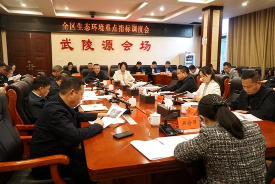 武陵源区融媒体中心10月23日讯(记者 王娇 通讯员 张琳)10月23日下午,武陵源区委书记,张管局党委书记吴俞萍主持召开生态环境重点指标调度会,听取全区生态环境重点任务进展情况汇报,对畜禽养殖整改、秸秆精准禁限烧及“两违”相关问题整改等工作进行再安排、再部署。区委副书记钟跃波等区(局)领导参加会议。