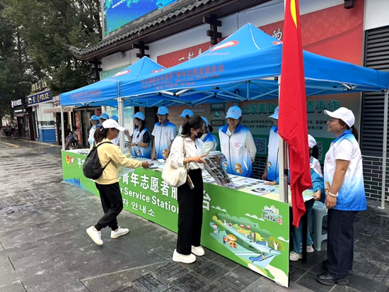 武陵源区融媒体中心10月3日讯(通讯员 唐弘毅)国庆中秋双节期间,武陵源团区委统筹青年力量,组织300余名志愿者在吴家峪门票站、专家村路口、黄龙洞景区等7个站点开展“平安满意在张家界”旅游志愿服务活动,以暖心服务提升游客出行体验。
