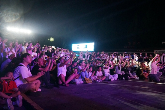 当晚19时,标志门广场华灯初上,流光溢彩。“月圆武陵源·国昌家团圆”中秋交响音乐会准时拉开帷幕。在指挥家优雅的挥棒下,《花好月圆》的欢快、《望月》的深情、《我和我的祖国》的激昂……一首首耳熟能详的经典旋律被艺术家们倾情演绎。熟悉的旋律引发了现场观众的情感共鸣,不少游客轻声跟唱,沉浸在节日的温情之中。