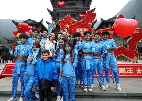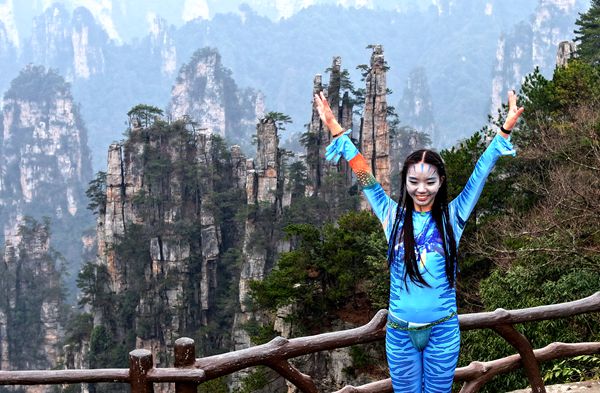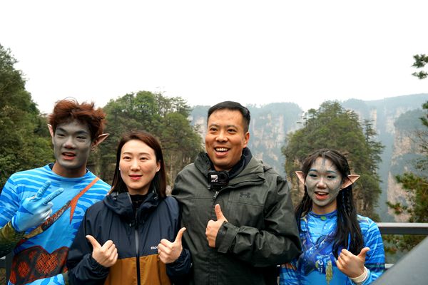 “昨天电影《阿凡达3》开篇的潘多拉仙境让我们迅速开启了此次张家界之旅,这里的景色非常美,没想到在‘悬浮山’原型地还能和景区‘纳美人’合影互动,真的感觉荧幕搬进了现实,非常开心。”来自成都的游客肖女士表示。