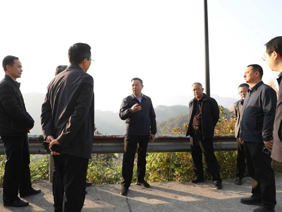 在S521公路杨指界隧道口、宝峰山、莓茶产业基地、协合村村部等地,钟跃波通过实地察看、现场问询等方式,详细了解生态环境治理、特色产业发展及基层治理等工作推进情况。