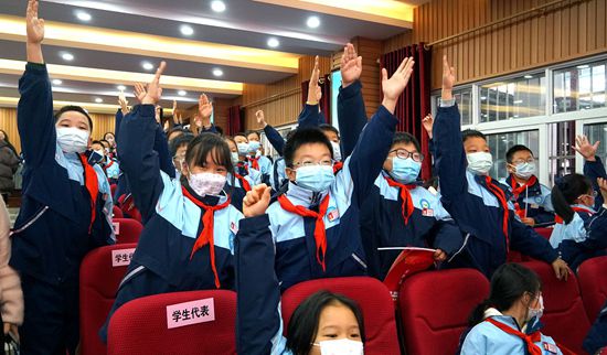 有奖问答环节,军地小学的学生代表们踊跃举手、积极互动,在问答交锋中深化了对反邪教知识的理解与记忆,充分展现出青少年群体主动识邪防邪的意识与担当。